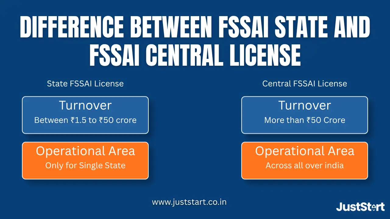 The most significant distinction between the two things exists because of their different dimensions. A State License covers food businesses that operate within a state and generate annual revenue up to ₹50 crore. The Central License applies to businesses that operate across state boundaries, handle imported and exported goods and generate yearly revenues above ₹50 crore.
